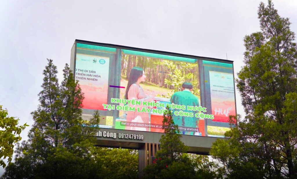– Video về Bộ quy tắc ứng xử giảm nhựa chiếu trên màn hình LED tại đường Hà Nội giao cầu Phú Xuân.